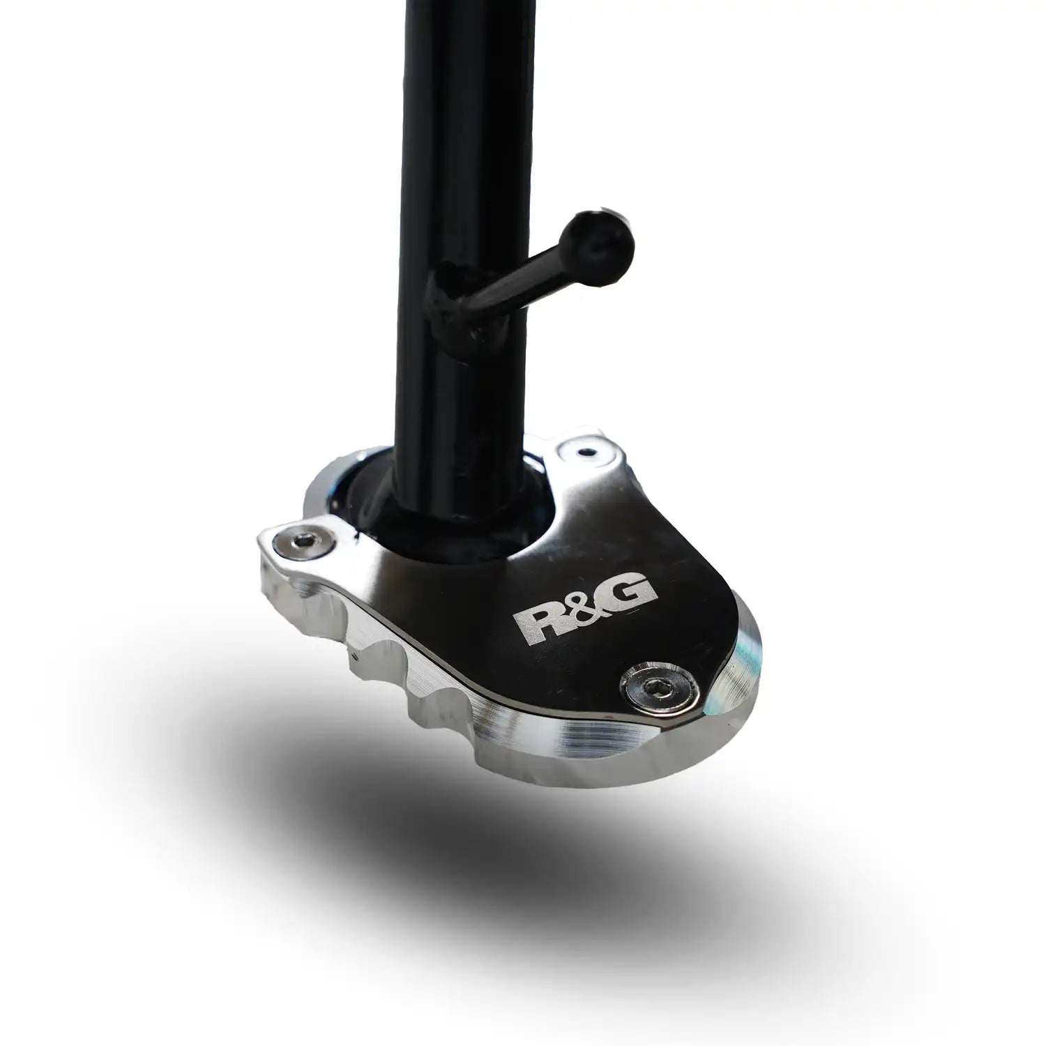 Kickstand Shoes bolt onto the bottom of the side stand, to enlarge the original’s footprint by up to 100%, significantly spreading the load placed upon it, to help prevent the stand ‘piercing’ the ground. Despite this enlargement, the Shoe does not affect ground clearance or interfere with the chain run during normal riding.