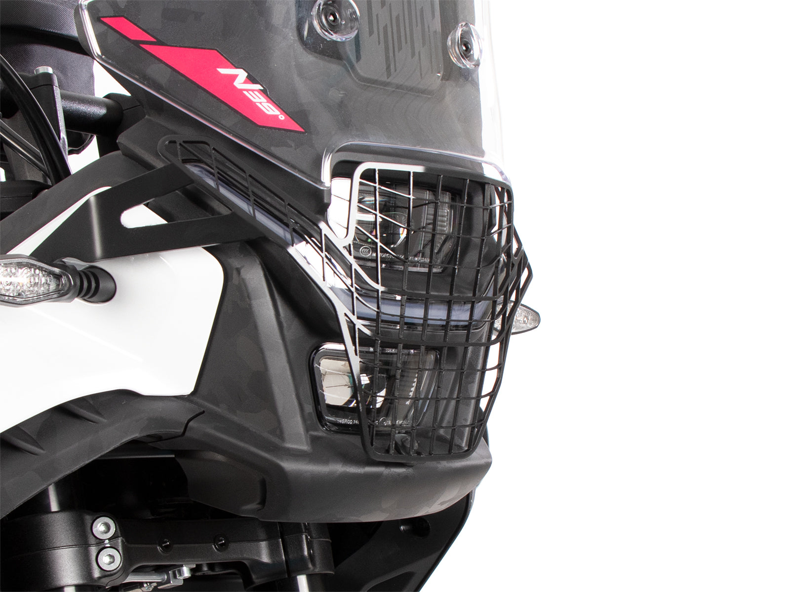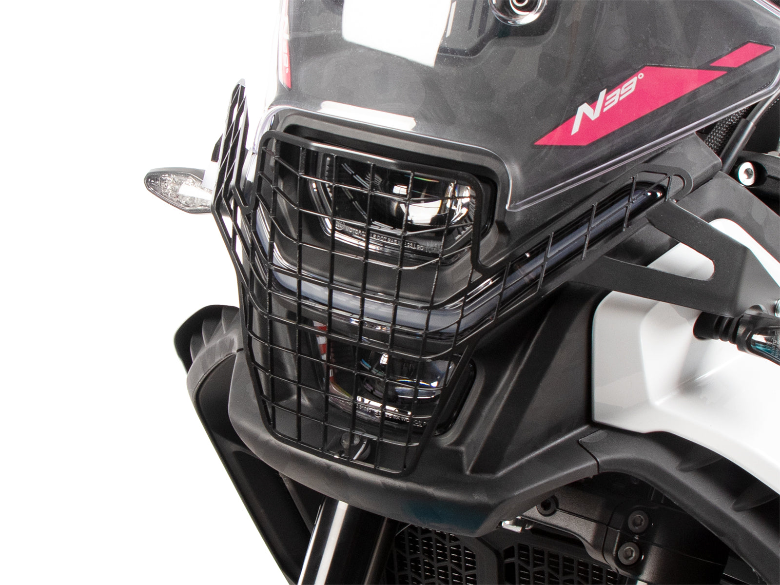 Our Hepco&Becker headlight grill keeps the light protected and also adds an great off-road look.