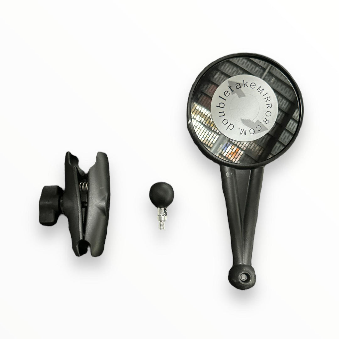 Doubletake Mirrors are designed to fold conveniently out of the way when you hit rough roads. Made in the U.S.A., they are sturdy (no vibrating views!), compact and practically indestructible. Note that Doubletake Mirrors only work with RAM products, and will not be covered by warranty if found to be used with other third-party products other than RAM mounts.
