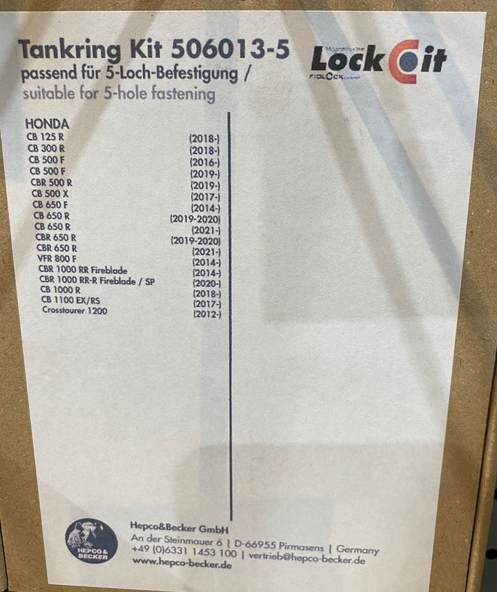 - every tank bag by HEPCO&BECKER can be fitted, but depends also on bike-specific tank-lid positioning and handlebars; please check the manual for more info and limitations