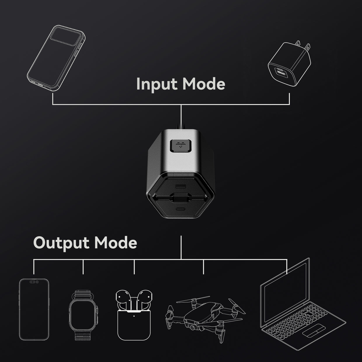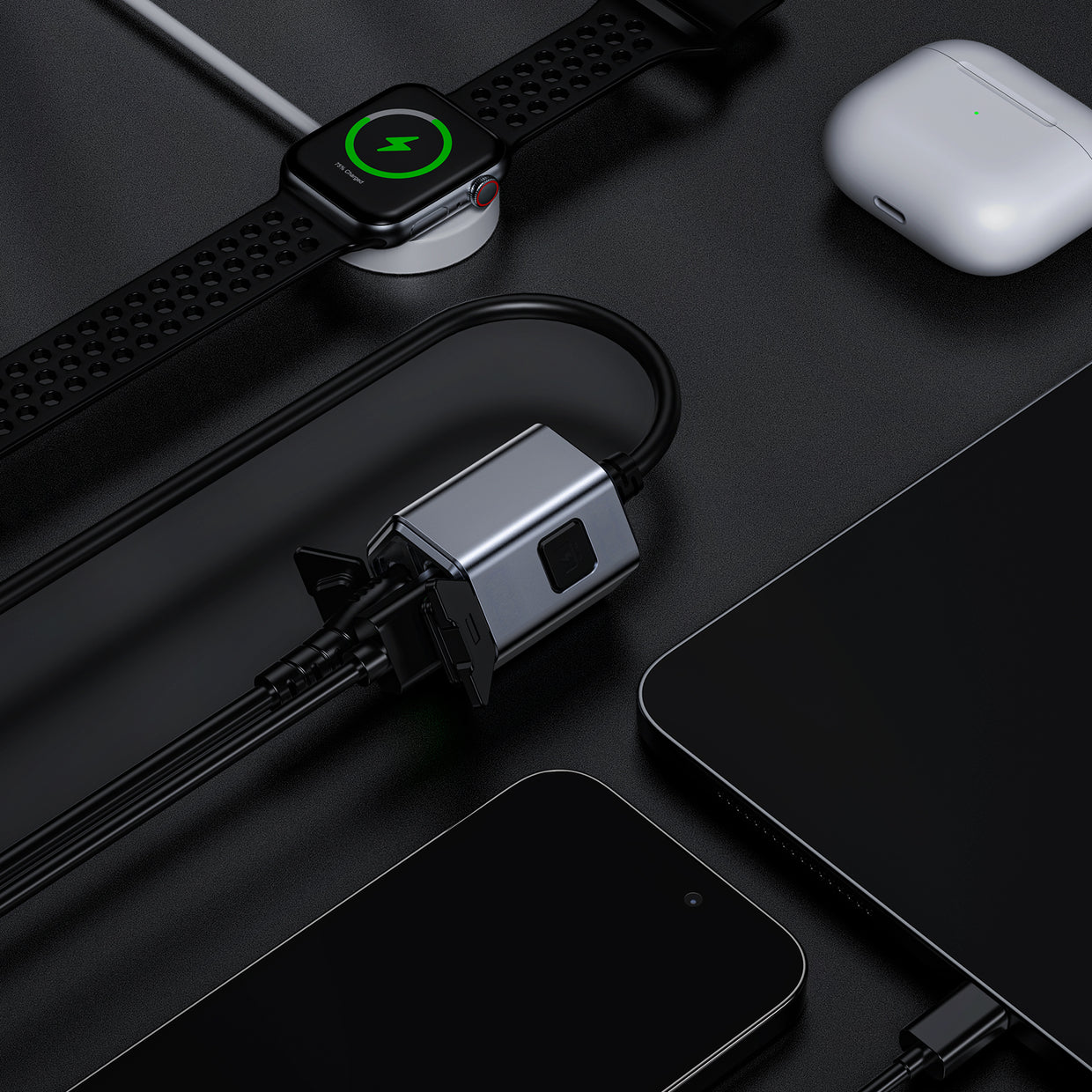 • Dual Output: USB-C (100W) + USB-A (24W) for simultaneous charging
